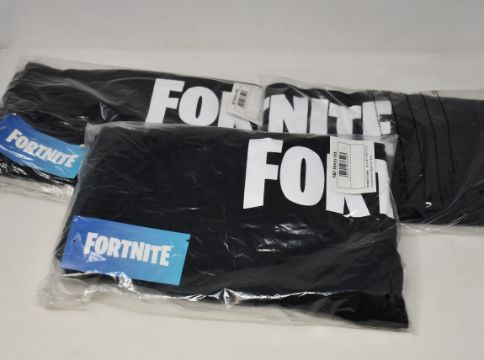Sixteen pairs of boys as new F&F Fortnite joggers in black (No sizes on label or tag).