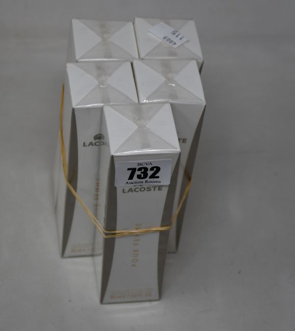 Five boxed as new Lacoste pour femme eau de parfum (90ml).