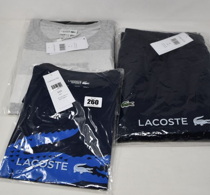 A pair of as new Lacoste sweatpants (FR 5), Lacoste T-shirt in grey (FR 4) and children's Lacoste T-shirt (12 years).