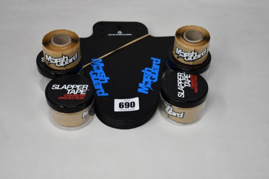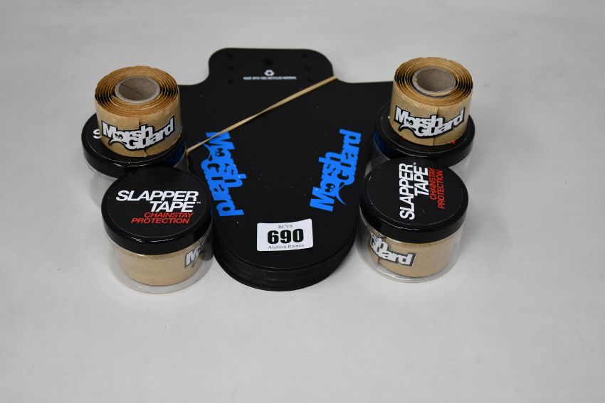 A box of assorted Marsh Guard Bicycle mud flaps and Slapper Tape.