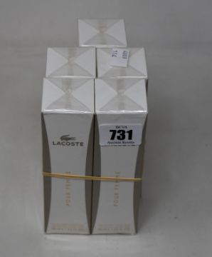 Five boxed as new Lacoste Pour Femme eau de parfum (90ml).