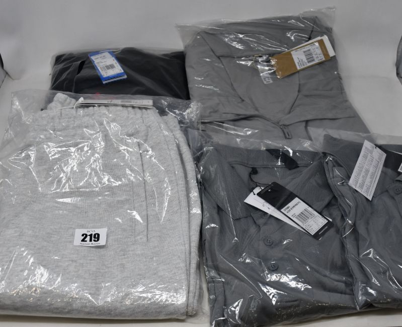 An as new Adidas Performance Condivo 20 Pre-Match jacket (3XL - RRP £60), two Adidas Golf Performance polo shirt (M, L - RRP £30 each), Adidas Trefoil London hoodie (L - RRP £60) and Adidas by Pharrell Williams PW Basics shorts (S - RRP £54).