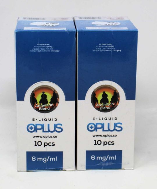 Eight boxes of ten (10ml) OPLus E-Liquid American Blend 6mg/ml (Over 18s only).