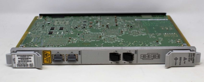 A pre-owned Ciena Nortel NTK554BAE5 OME 6500 Optical Service Channel w/WSC 2 Port SFP 2 Port 10 BT (WMUCA6ZEAB) (Untested, sold as seen).