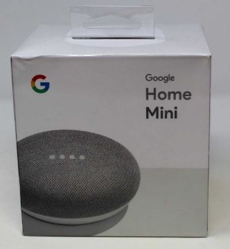 A boxed as new Google Home Mini Smart Speaker with Google Assistant in Chalk (Model: GA00210-US) (Box sealed).