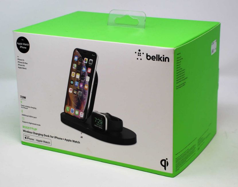 A boxed as new Belkin Boost Up Wireless Charging Dock for iPhone and Apple Watch (M/N: F8J235MYBLK) (Box sealed).