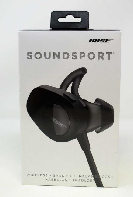 A boxed as new pair of Bose SoundSport Bluetooth Wireless In-Ear Headphones in Black (Box sealed).