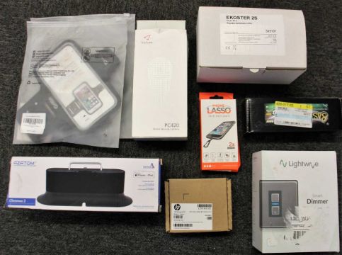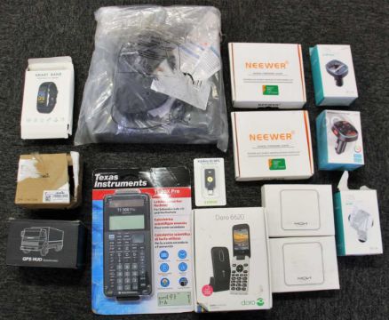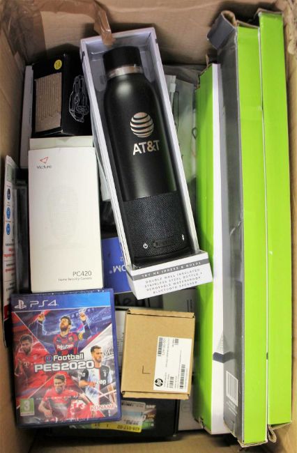 COLLECTION ONLY: A box of assorted as new small electrical items and accessories (Some boxes opened/damaged) (Sold as seen).