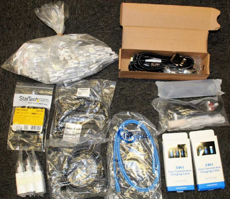 COLLECTION ONLY: A quantity of assorted a new cables and chargers (Three boxes total).