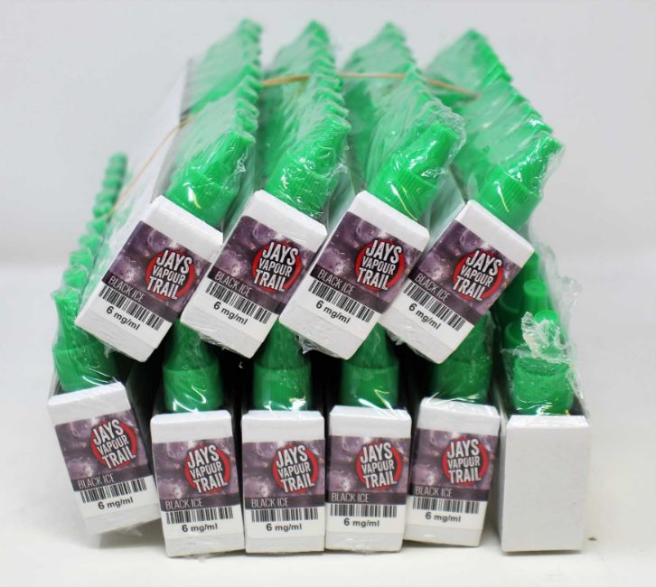 Ten packs of ten 10ml/6mg vape liquid in black ice flavour (Over 18s only).