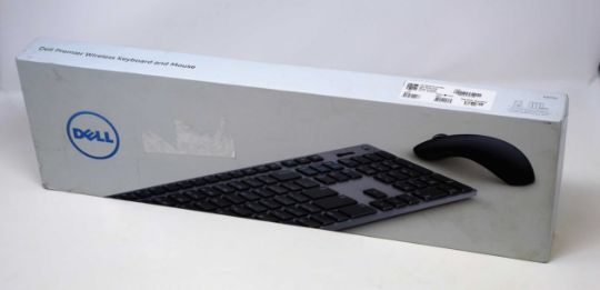 A boxed as new Dell KM717 Premier Keyboard And Mouse Set (QWERTY - UK) (Box sealed, some cosmetic damage to box).