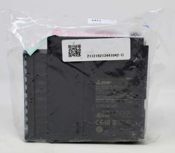 An as new Mitsubishi Q68DAIN D/A Converter PLC Module (No box, packaging sealed).