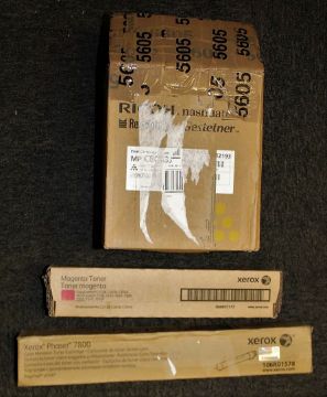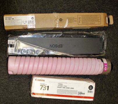 COLLECTION ONLY: A quantity of assorted as new printer ink/toner cartridges and printer parts including HP, Xerox and OKI (Some boxes opened, cosmetic damage to packaging).