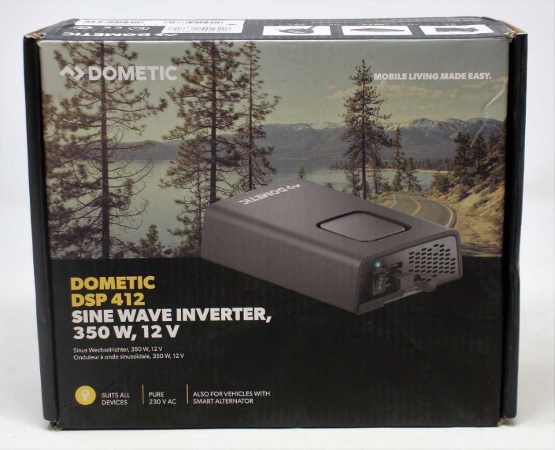 A boxed as new Dometic SinePower DSP 412 Sine wave inverter, 350 W, 12 V (EU Version) (Box sealed, some cosmetic damage to box).
