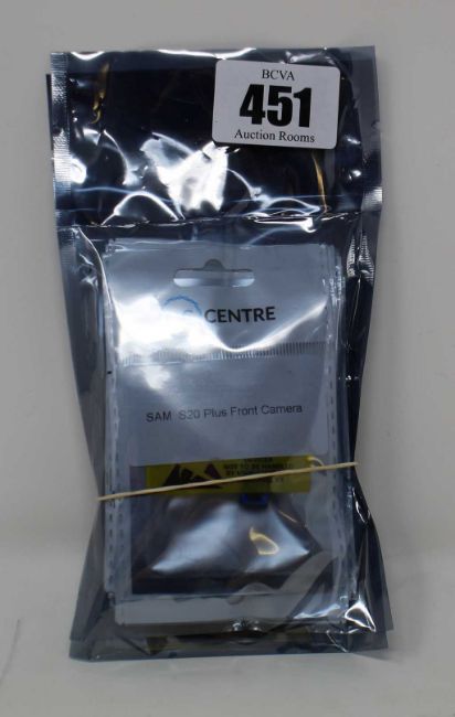 Ten as new QC Centre replacement front cameras for Samsung S20 Plus and two packs of five QC Centre rear camera lens cover sets for Samsung S20 Plus (Packaging sealed).