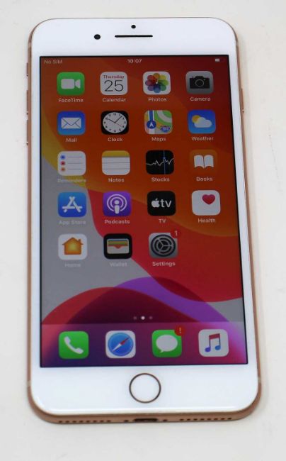 A pre-owned Apple iPhone 8 Plus (AT&T/T-Mobile/Global/A1897) 64GB in Gold (iCloud activation clear. Some light cosmetic scratches to screen glass) (Checkmend report ID: CM16868618-A307D).