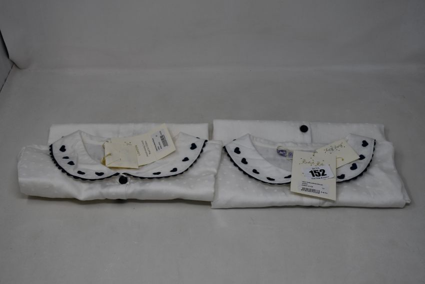 Ten girls as new Rachel Riley London Heart embroidered blouses (2Y, 3Y, 4y, 5Y, 2 x 6Y, 2 x 7Y, 2 x 8Y - RRP £18 each, please note there are slight marks on back of some blouses where the dye from the buttons has bled, this should come out when washed).