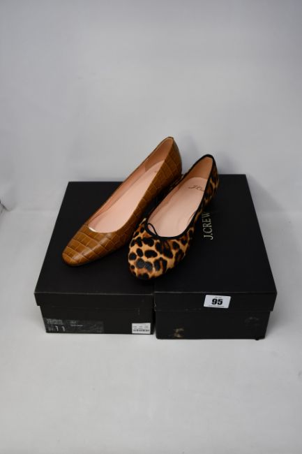 A pair of as new J.Crew Croc Embossed block heel pump (UK 8.5) and a pair of as new J.Crew ballet flats in leopard (UK 8.5).