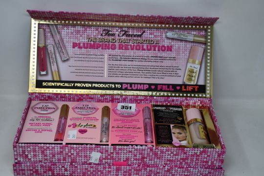 One boxed as new Too Faced Plumping Revolution set to include Too Faced lip injection ultimate lip plumper, one Too Faced plump and prime luxury primer serum and one Too Faced lip injection power plumping lip gloss.