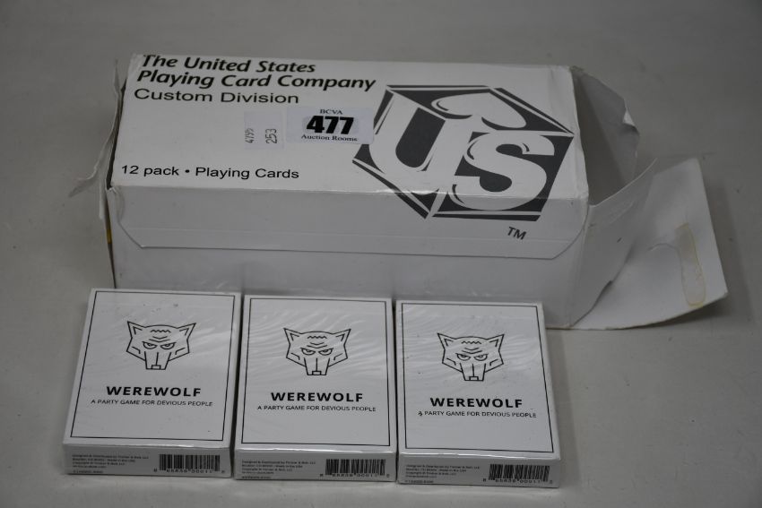 Four boxed as new Stellar Factory Werewolf a Party Game for Devious People card game (Approximately: 48 packs).