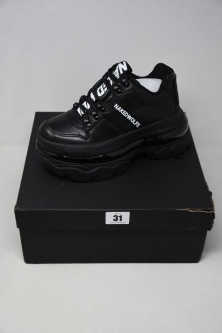 A pair of as new Naked Wolfe sneakers in black (UK 4 - Damage to box lid).