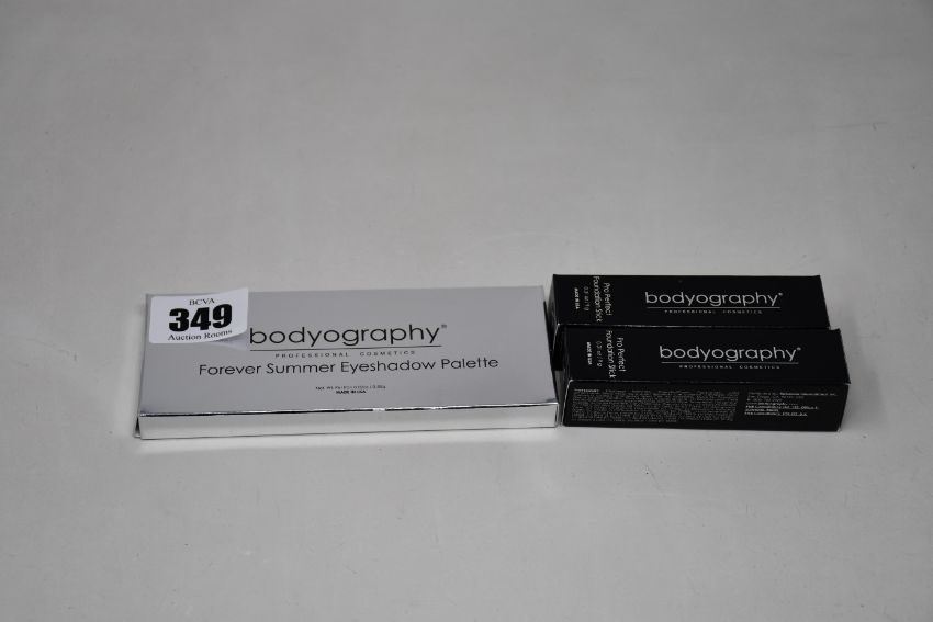 A boxed as new Bodyography Forever Summer Eyeshadow Palette and twelve boxed as new Bodyography Pro Perfect Foundation Stick plus.