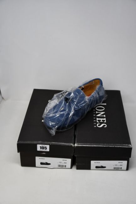 Two pairs of as new Jones Bootmaker Patrick suede leather driver moccasins (UK 10 - RRP £49 each).
