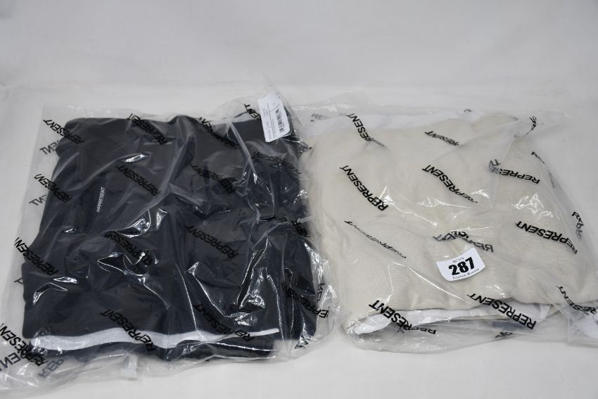 Two as new Represent Blank vintage T-shirts (1 x black, 1 x white, both L - RRP £70 each).