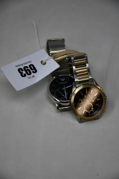 A men's pre-owned Emporio Armani connected watch (Damage to strap) and a men's Armani Exchange AX2617 watch (No boxes).