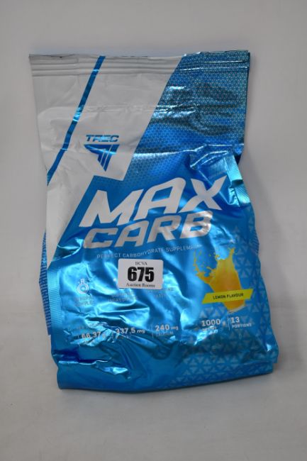 Nineteen 1000g pouches of Lemon flavored Trec Max Carb carbohydrate supplement.