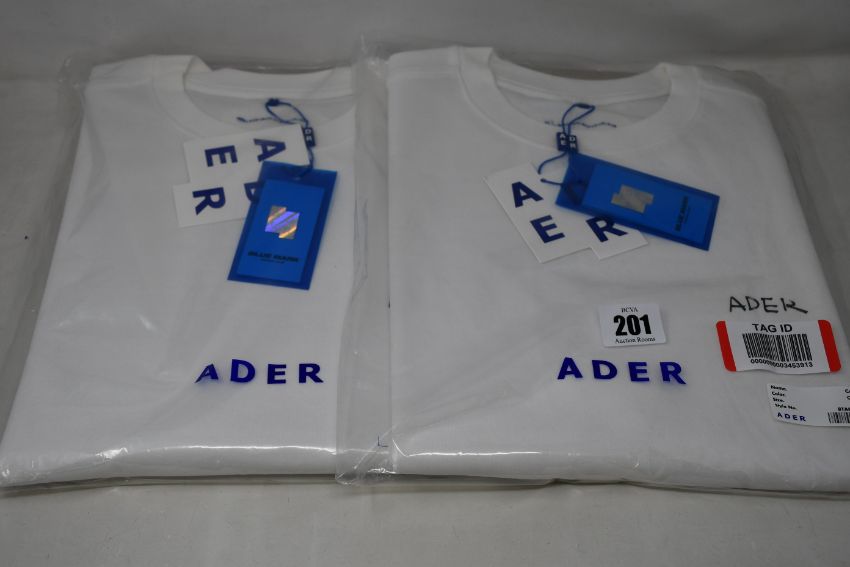 Two as new Ader Error Calli T-shirts (Size A2 - RRP £85 each).