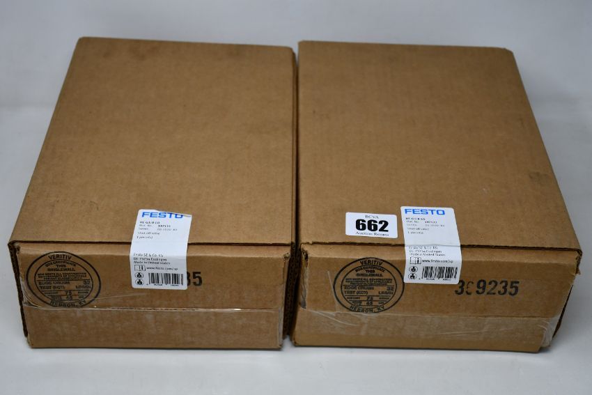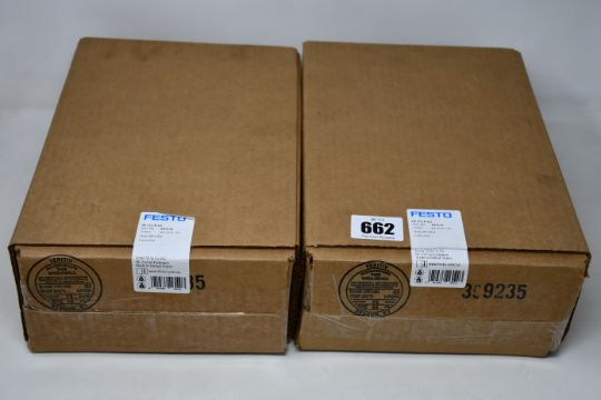 A collection of Festo automation technology to include: one boxed 6-way valve terminal (PN:573606) and two shut off valves (PN: 1971323).