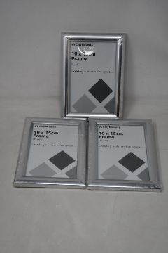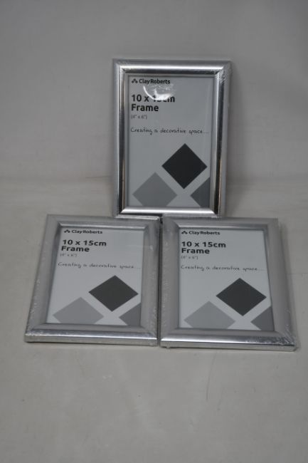 Ten packs of three Clay Roberts 6"x4" silver picture frames.