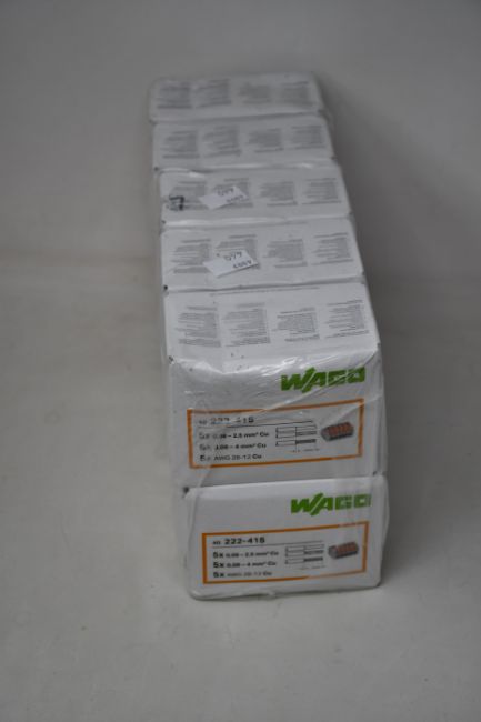 Ten packs of firty Wago 222-415 grey 32A 5 way in-line wire connectors.