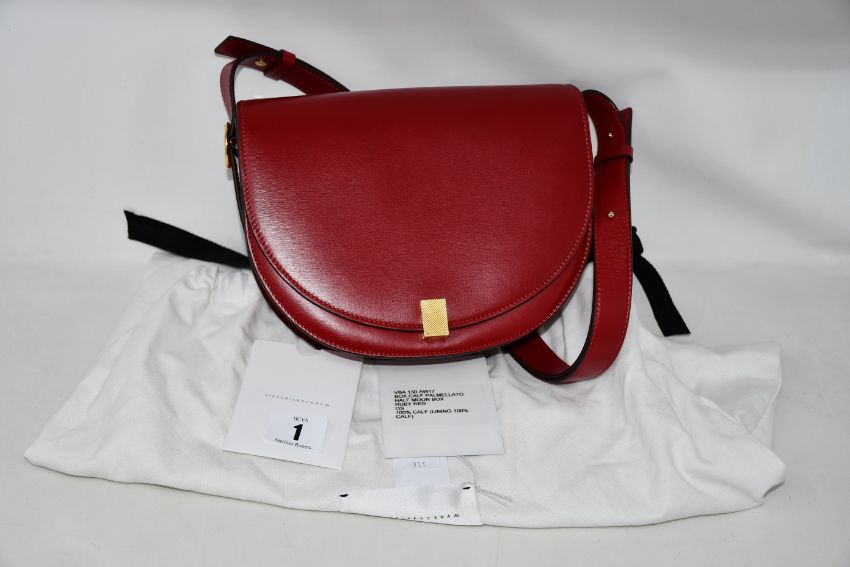 An as new Victoria Beckham Half Moon handbag in rub red Palmellato leather with dust bag.