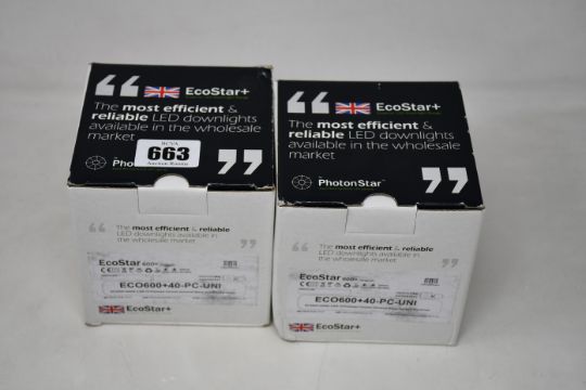 Five boxed as new PhotonStar EcoStar 600+ polished chrome LED downlights.