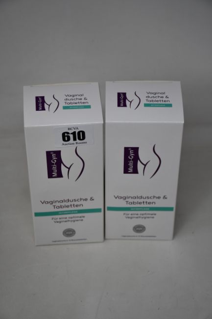 A Box of 12x individually packaged Multi-Gyn Vaginal douche treatments