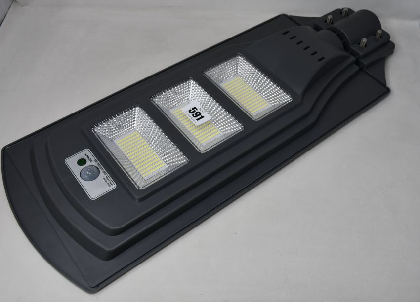 Three Solar powered LED Street Lamps with remote control and motion sensor.