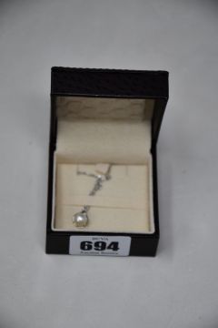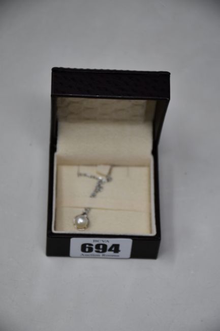 An as new Angara freshwater cultured pearl Solitaire with diamond necklace.