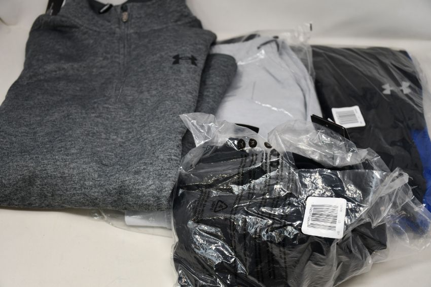 Five items of as new Under Armour sportswear; two Tech 2.0 tops (L - RRP £34), double knit joggers (L - RRP £40), Challenger II training trousers (L - RRP £35) and Storm sweater fleece (L - RRP £45).