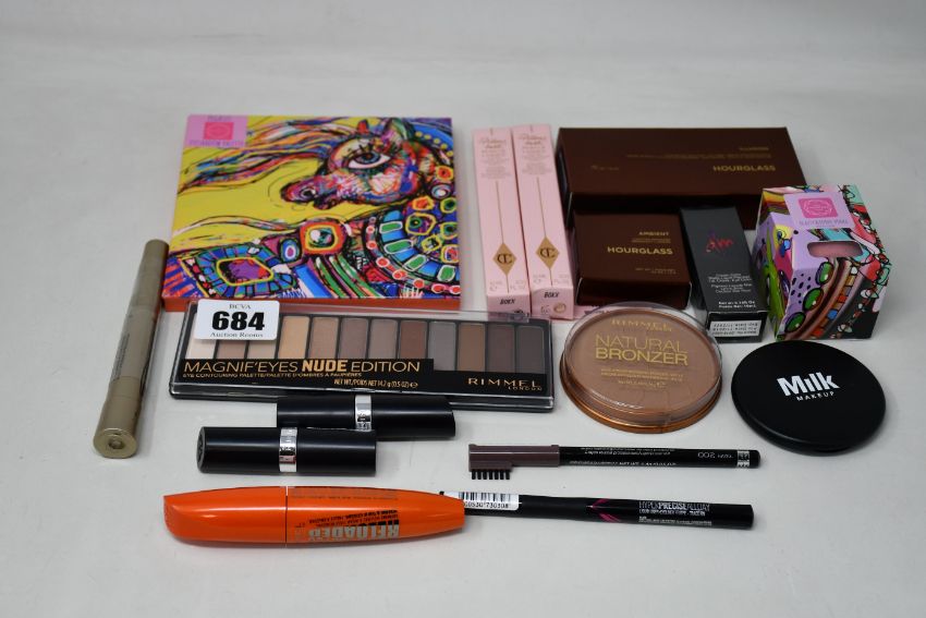 A quantity of assorted cosmetics to include Rimmel, six Charlotte Tilbury push up lashes and four assorted Hour Glass cosmetics (Approximately 28 items).