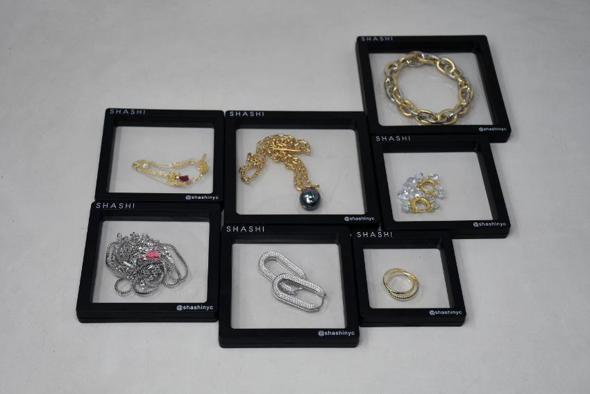 Seven assorted Shashi jewellery items to include earrings, ring, necklace and bracelet.