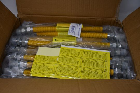 Twenty five as new NDL Gas Flex Connectors G303-3131-12 (12" x 5/8" OD (1/2" ID)1/2" MIP x 1/2" MIP-Coated).
