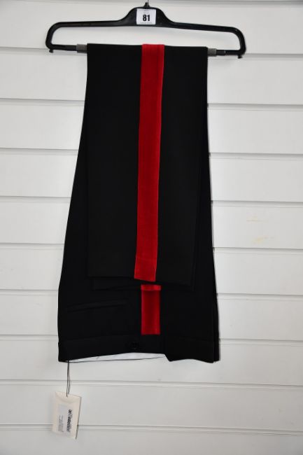 A pair of as new Wales Bonner dub tuxedo trousers in black/ruby (Size 48 - RRP £240).