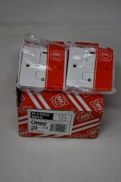 Three boxes of ten MK Logic Plus 13A 1 Gang Double Pole Switched Connection Units (K1060 WHI).