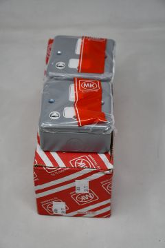 Two boxes of five as new MK K932ALM Metal Clad 13A DP Switched Fused Spur With Flex Outlet Connection Units.