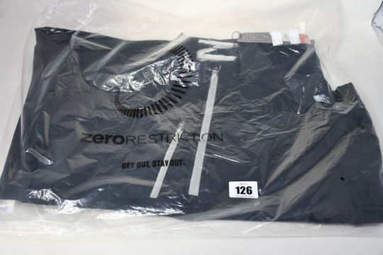 A men's as new Zero Restriction Z500 1/4 Zip Pullover in black/metallic silver (Small).