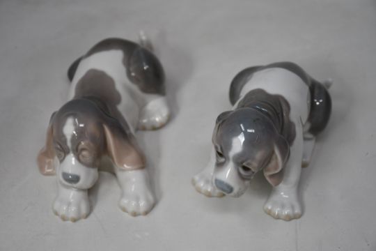 Two Lladro porcelain dog figurines, in good condition.