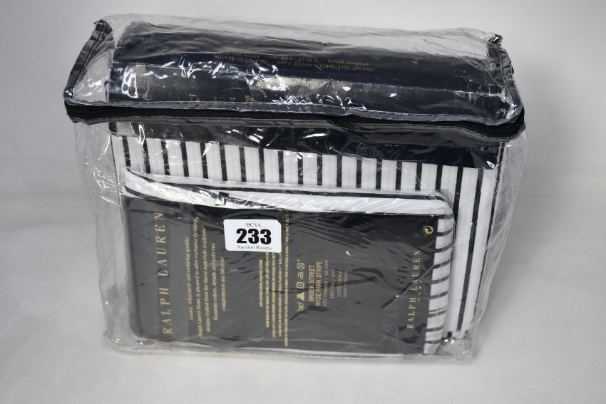 A Ralph Lauren Hyde Park Stripe 400 x 200cm Duvet and Pillow Case Set.