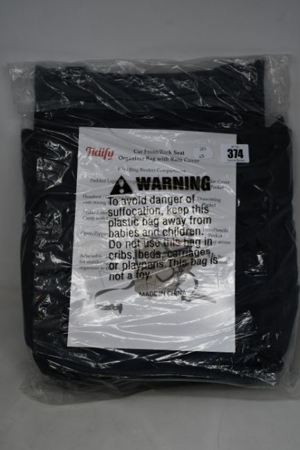 Two as new black Tidify car front seat organizers with rain covers/bottle holder/padded laptop compartment, zipper pockets/padded sleeve carry with comfort/adjustable straps.